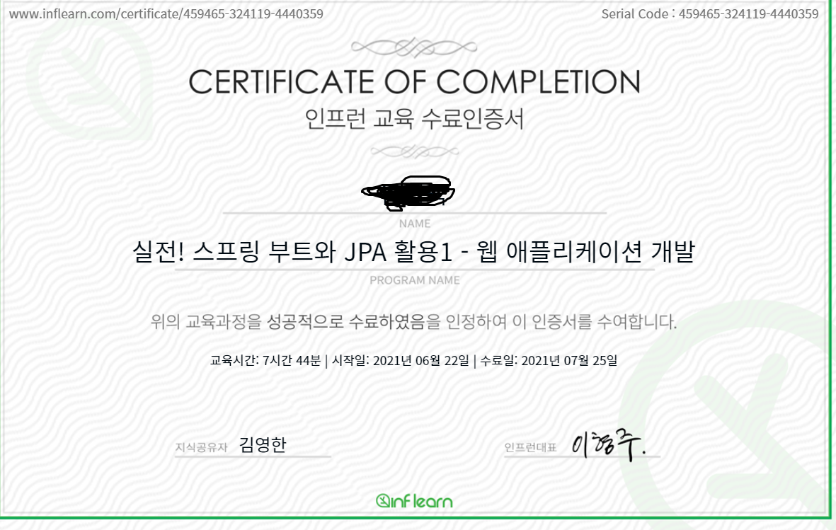 [교육이수] 스프링 핵심 원리 교육 이수 (0) | 2021.06.22 |