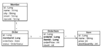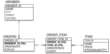 - 주문과 상품 사이에 다대다 관계를 주문 상품을 넣어 1:N, N:1 로 풀어낸다.