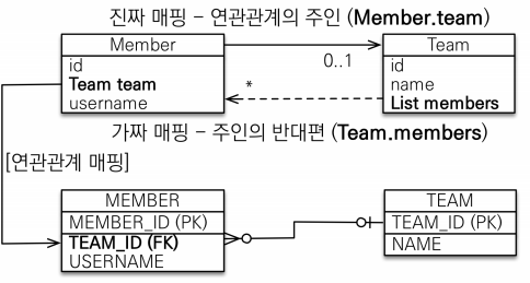 - 객체의 관계중 하나는 연관관계 주인으로 지정해야 된다.