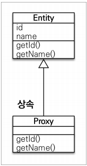 - 아래 그림을 보면 실제 Entity 를 상속 받아서 Proxy가 만들어 진다.