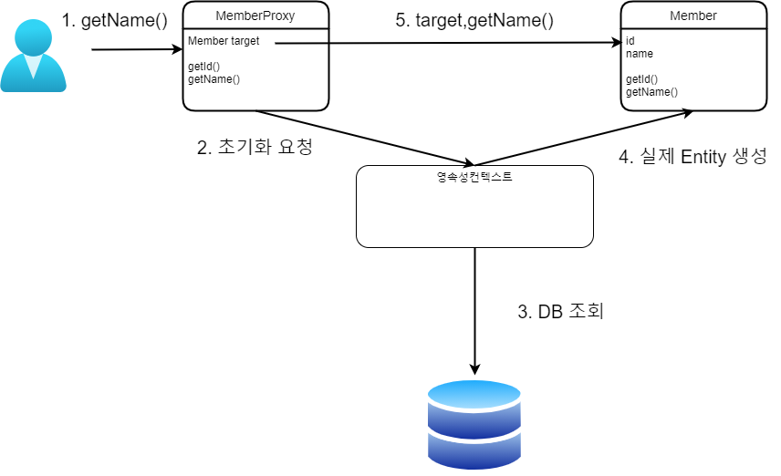 1. Member proxyMember = em.find(Member.class, member1.getId());
