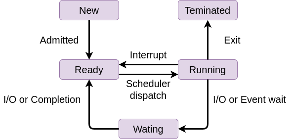 - Wating: 이벤트 발생으로 프로세스가 대기하는 상채