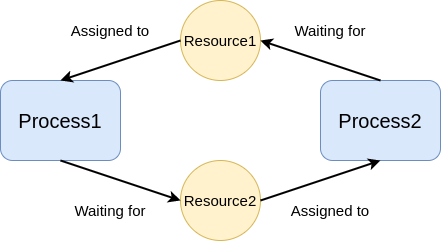- Process1 이 Resource2의 자원을 사용하기 위해 기다린다.