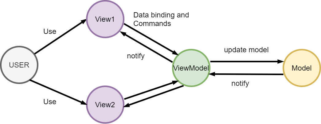 - 사용자의 이벤트를 데이터 바인딩을 통해 뷰모델로 전달한다.