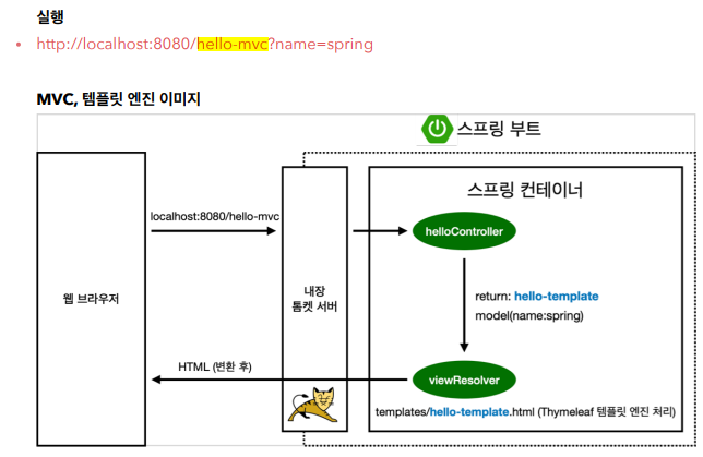 4. return을 할때 모델과 hello-template 스트링을 스프링에게 넘겨준다.