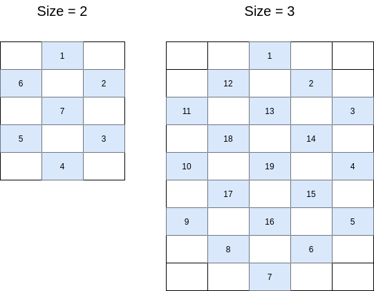 - 벌집 모양으로 순서대로 숫자를 채워 나간다.