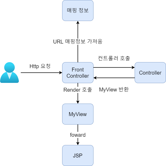 - 여기서는 서블릿을 상속받아 FrontController 를 구현하였다.