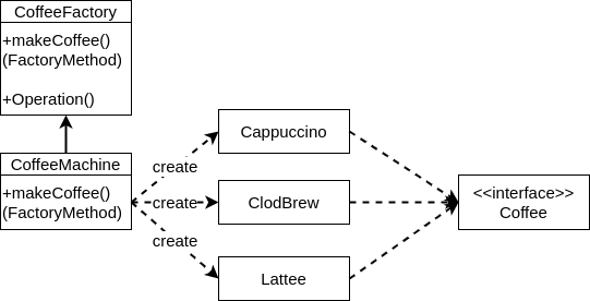 - CoffeeFactory: makeCoffee 를 팩토리 메서드로 사용한다.
