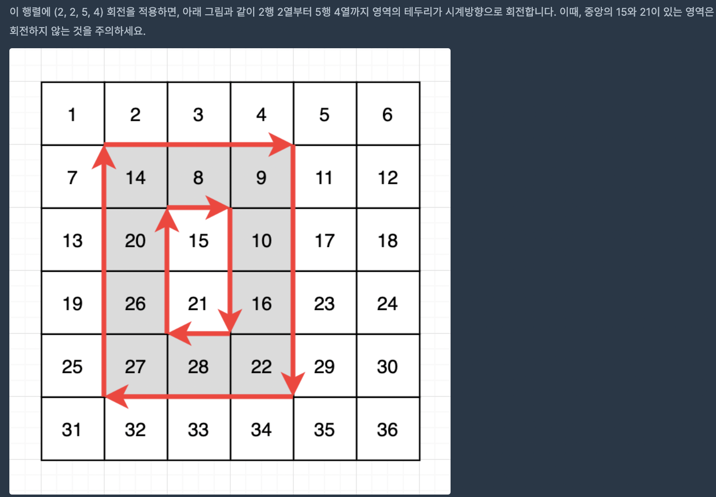 - 2,2,5,4 가 주어 졌을때 회전 시킨다 문제를 보면 한칸씩 시계 방향으로 회전 시키면 될것 같다.