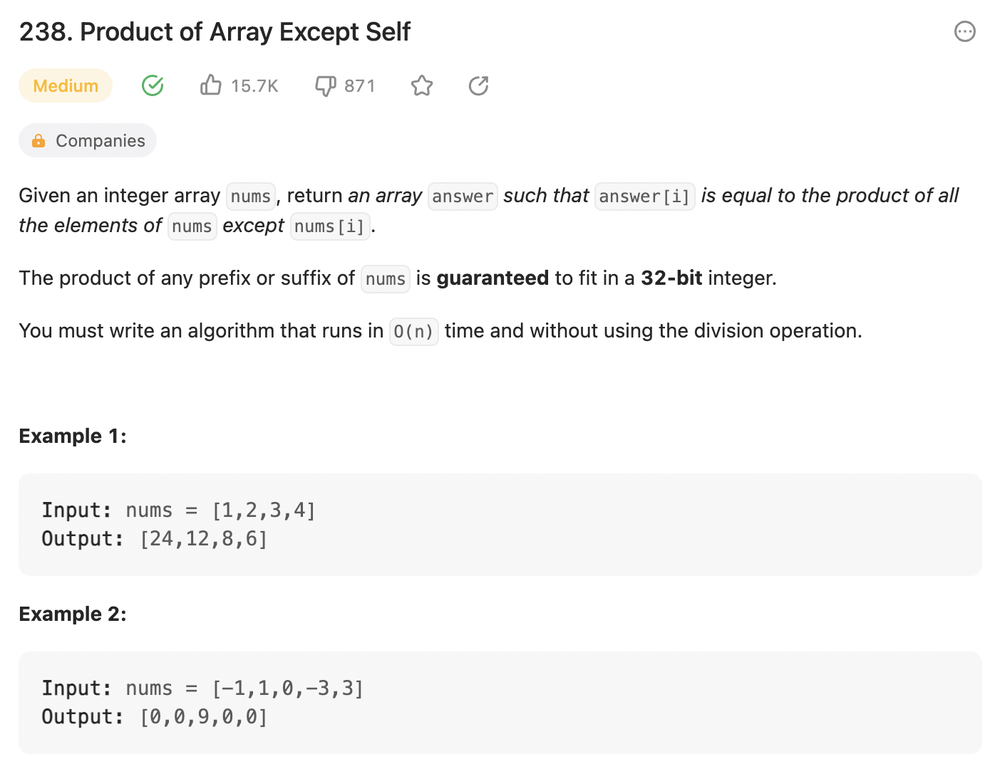 https://leetcode.com/problems/product-of-array-except-self/description/
