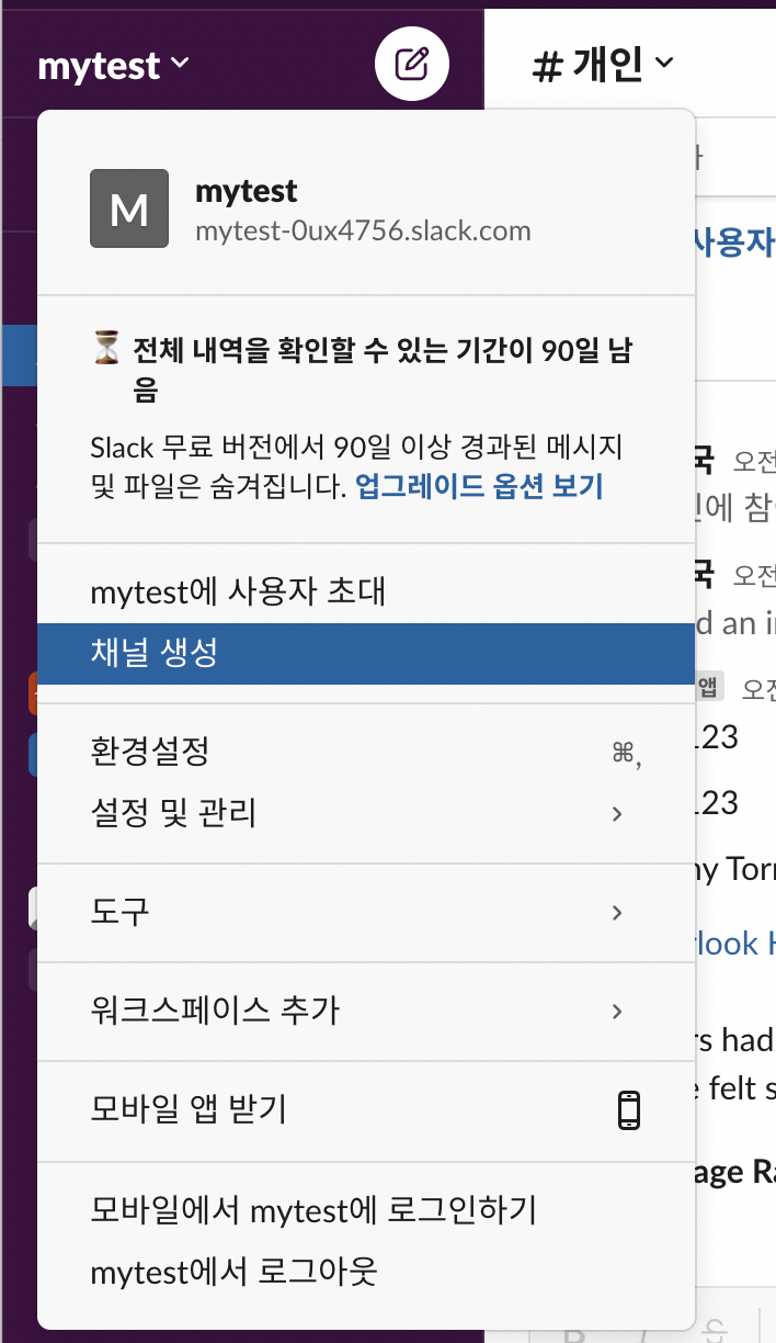 슬랙 연동을 위한 채널 생성및 앱 생성