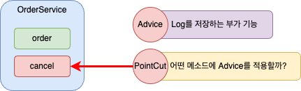 - 아래 처럼 OrderService가 있고 그안에 save, cancel 메소드가 있다고 해보자.