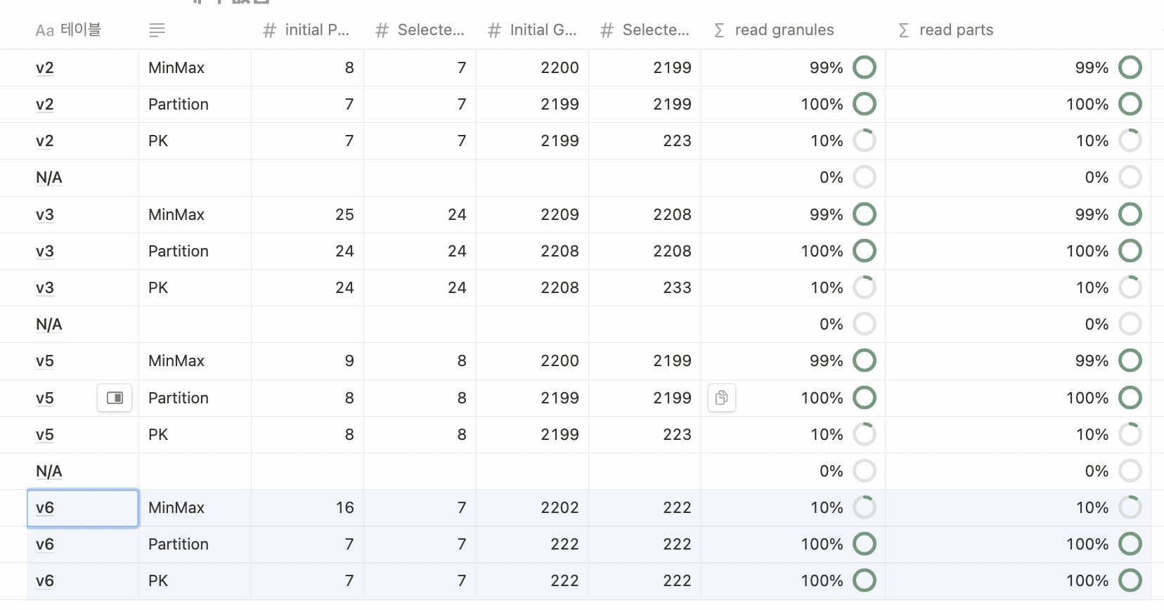 - 하나의 파트안에는 8192 rows 이 있는데 이것을 granule 이라고 부른다.