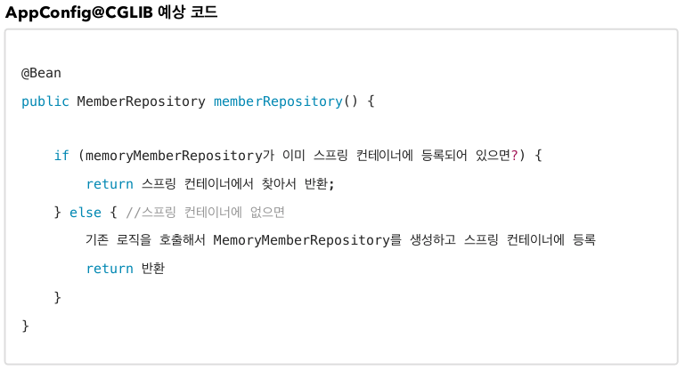 스프링이 CGLIB라는 바이트코드 조작 라이버르리를 사용해서 AppConfig 클래스를