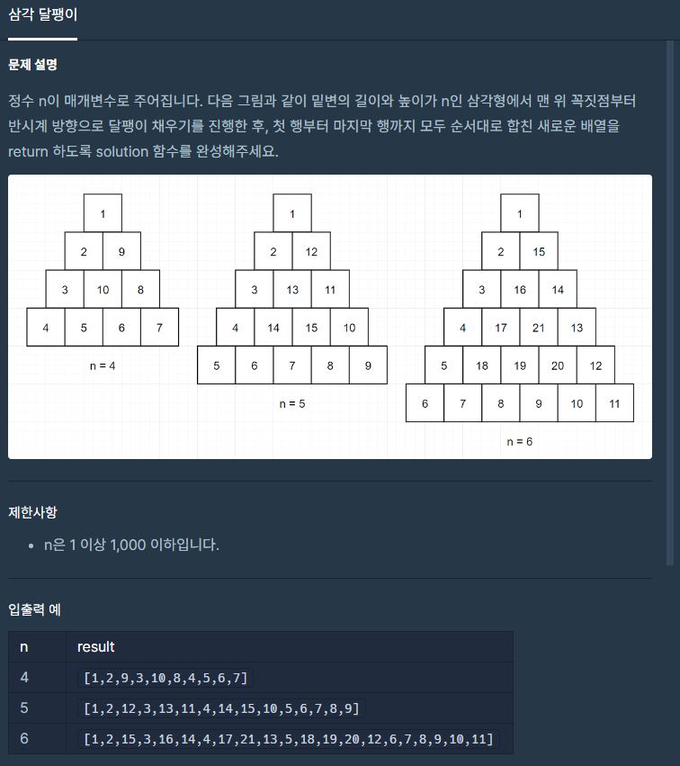 문제링크: https://programmers.co.kr/learn/courses/30/lessons/68645