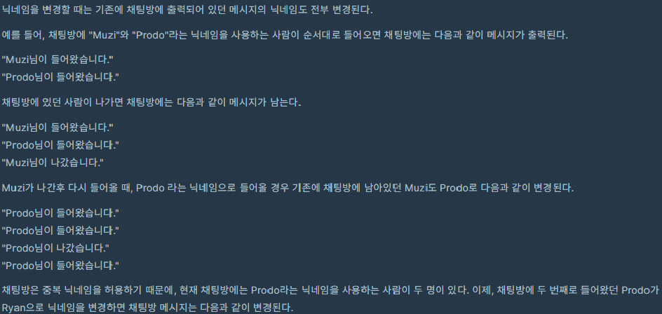2. 최종 출력은 변경된 닉네임으로 보여줘야 한다.