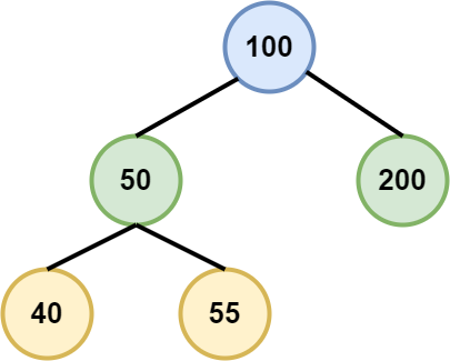 - 50 을 넣을때 100 과 비교한다. 부모보다 작기 때문에 왼쪽에 추가해준다.