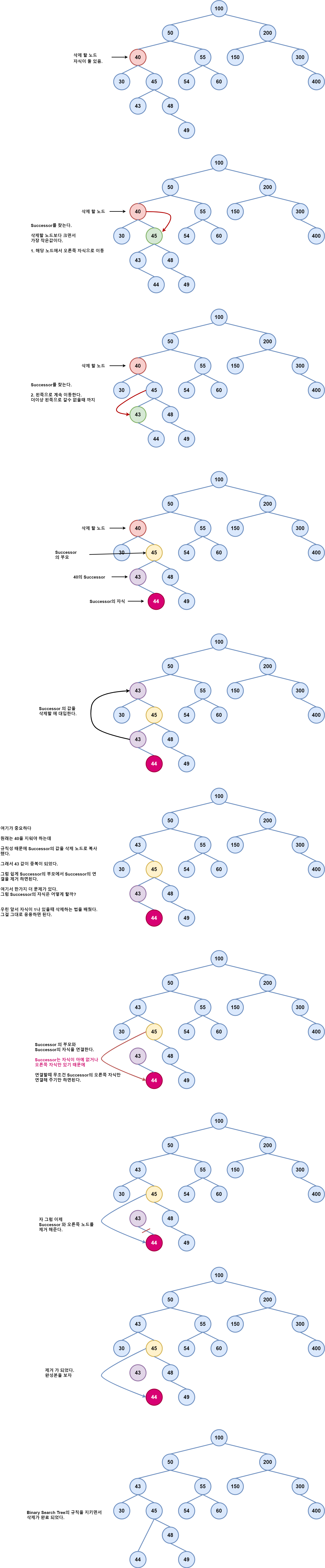Successor 를 이용하여 삭제하는 방법으로 설명하겠습니다.