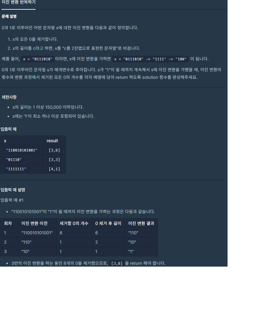 단 중요한건 제목부터 이진변환 반복이라는것.