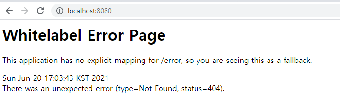 http://localhost:8080/ 으로 들어 갔을때 에러 페이지가 나오면 준비가 다 된것이다.